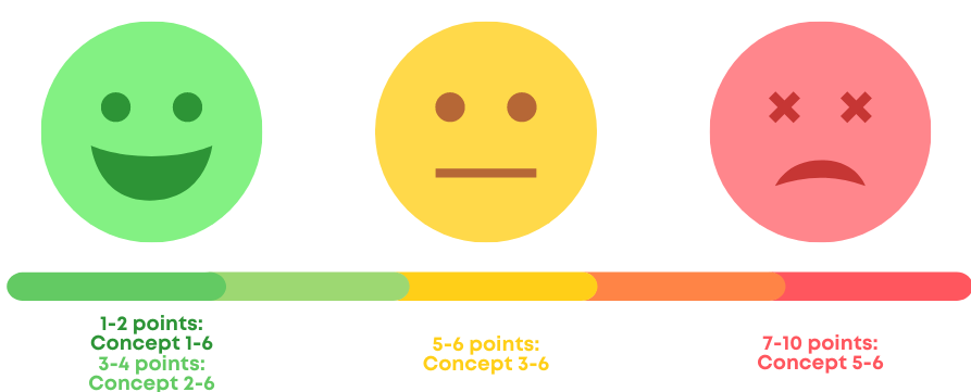 A low sum represents lower risk and you can choose from one of the least resource-intensive concepts. In contrast, the higher the sum – the more risk and higher requirements for conducting (more resource-intensive) audits/inspections.